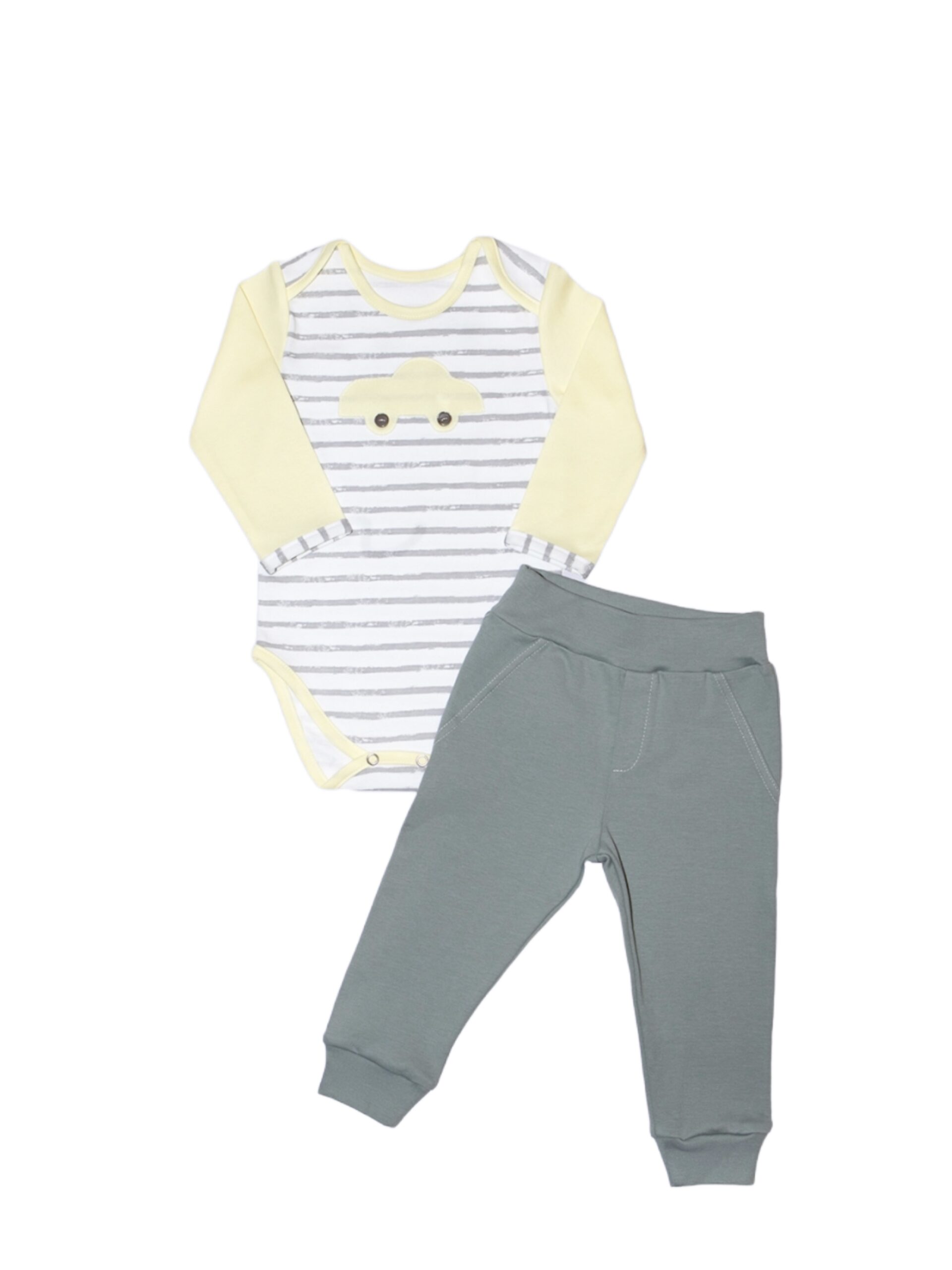 Комплект детский «Тачки» (боди, ползуны с открытыми стопами ног )